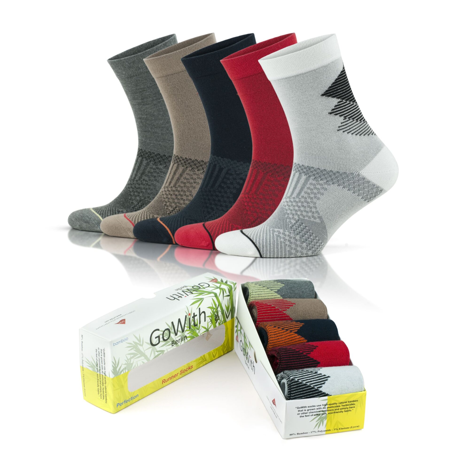 Kleurrijke bamboe crew sokken | GoWith 5 paar Sport Quarter-sokken voor dames en heren | Hardloopsokken | Cadeau voor mannen |Schoenmaat: 8.5-10.5 | 3209
