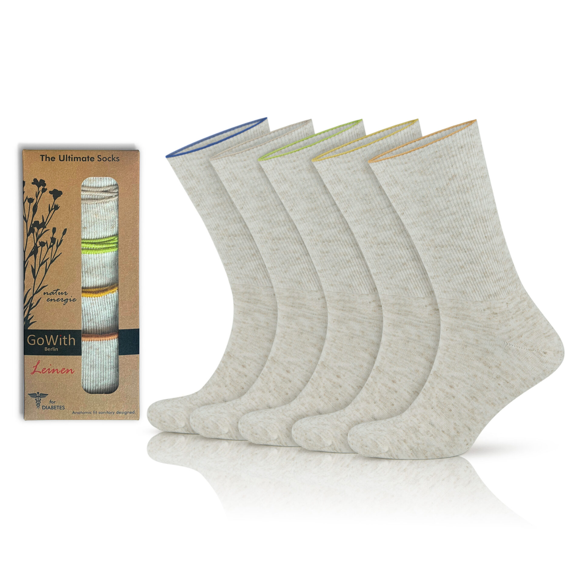 GoWith-Linnen Diabetische Sokken-5 paar
